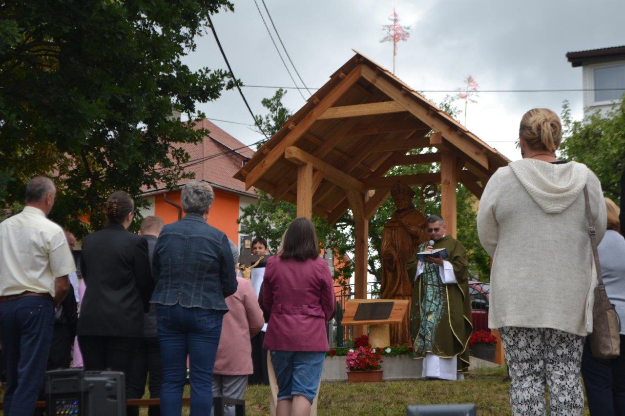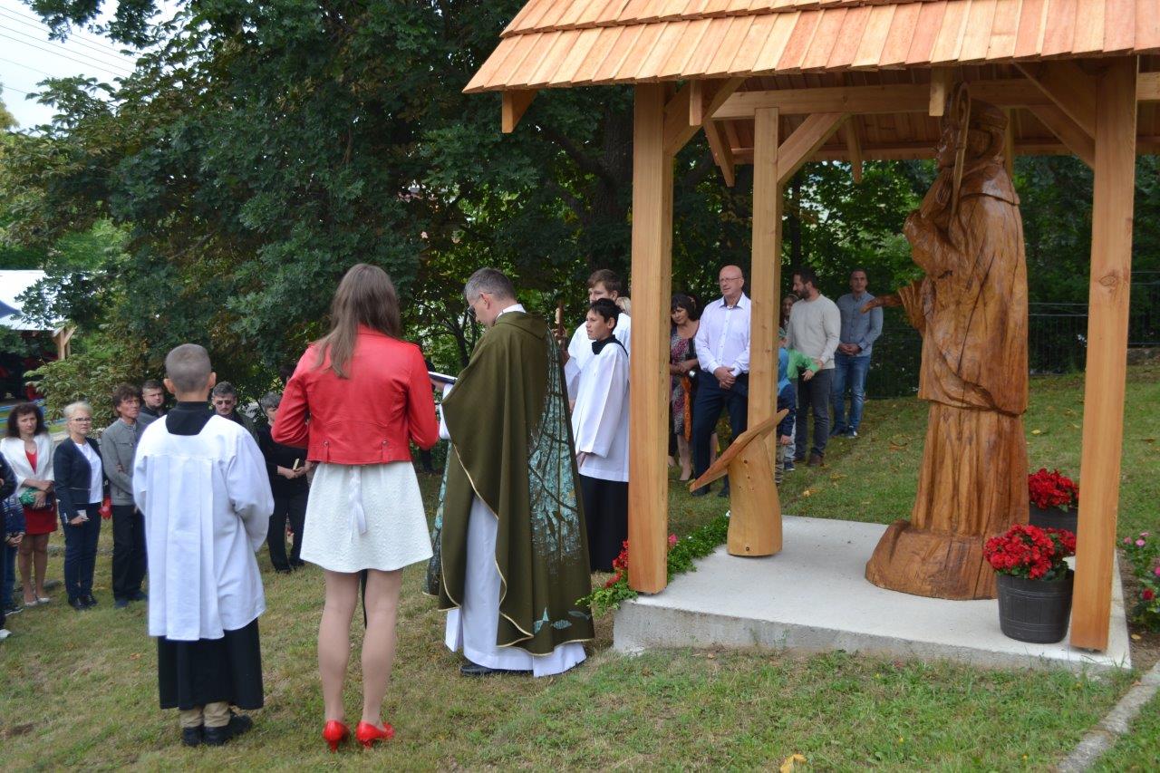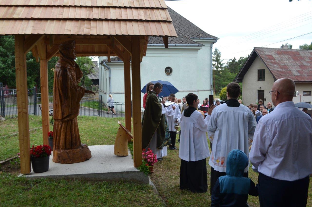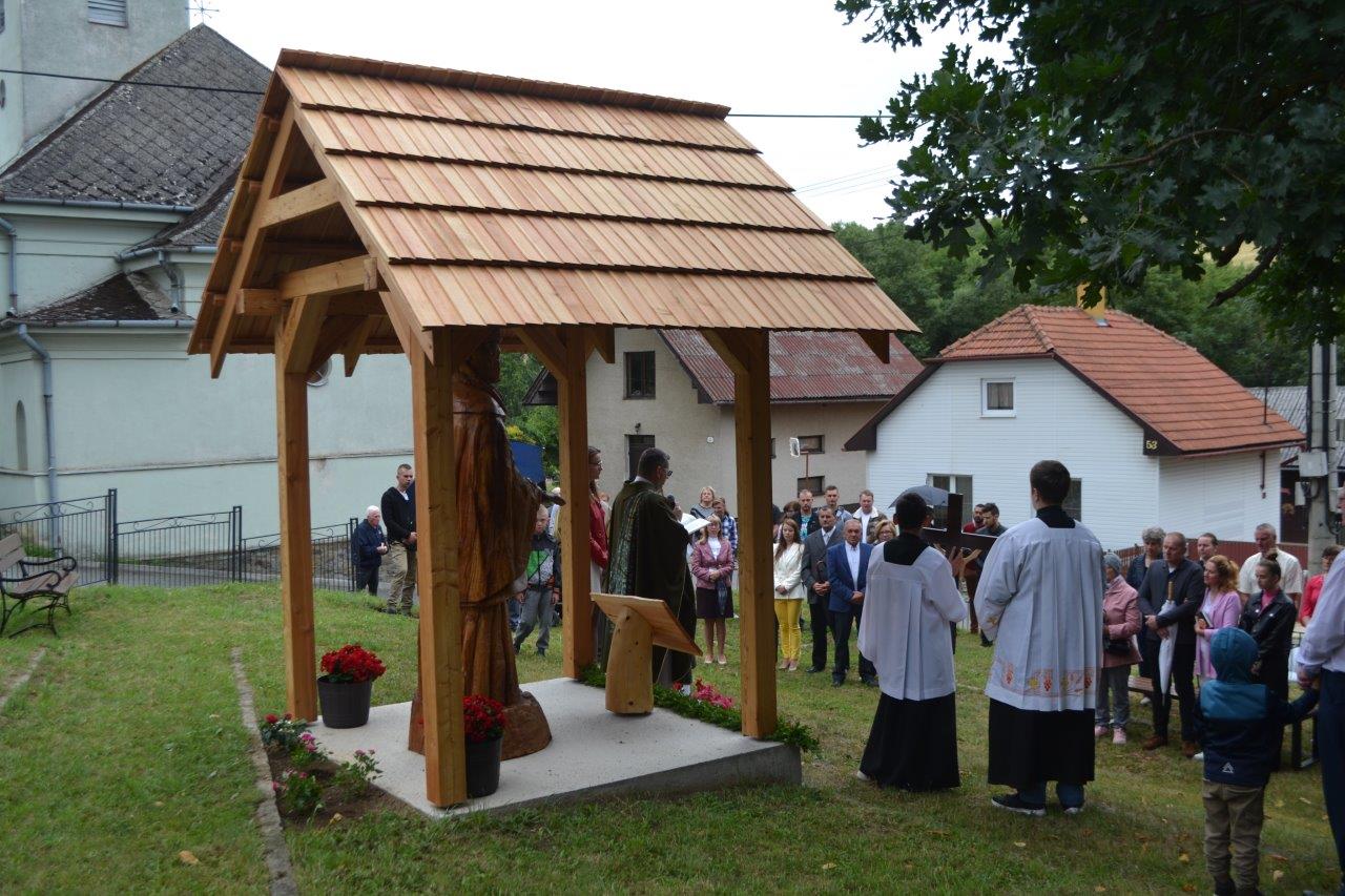 ICLic. Jozef Holubčík, PhD. 10.7.2022 požehnal sochu sv. Vojtecha, ktorú zhotovil Mgr. Dávid Maliňák z dubového dreva.