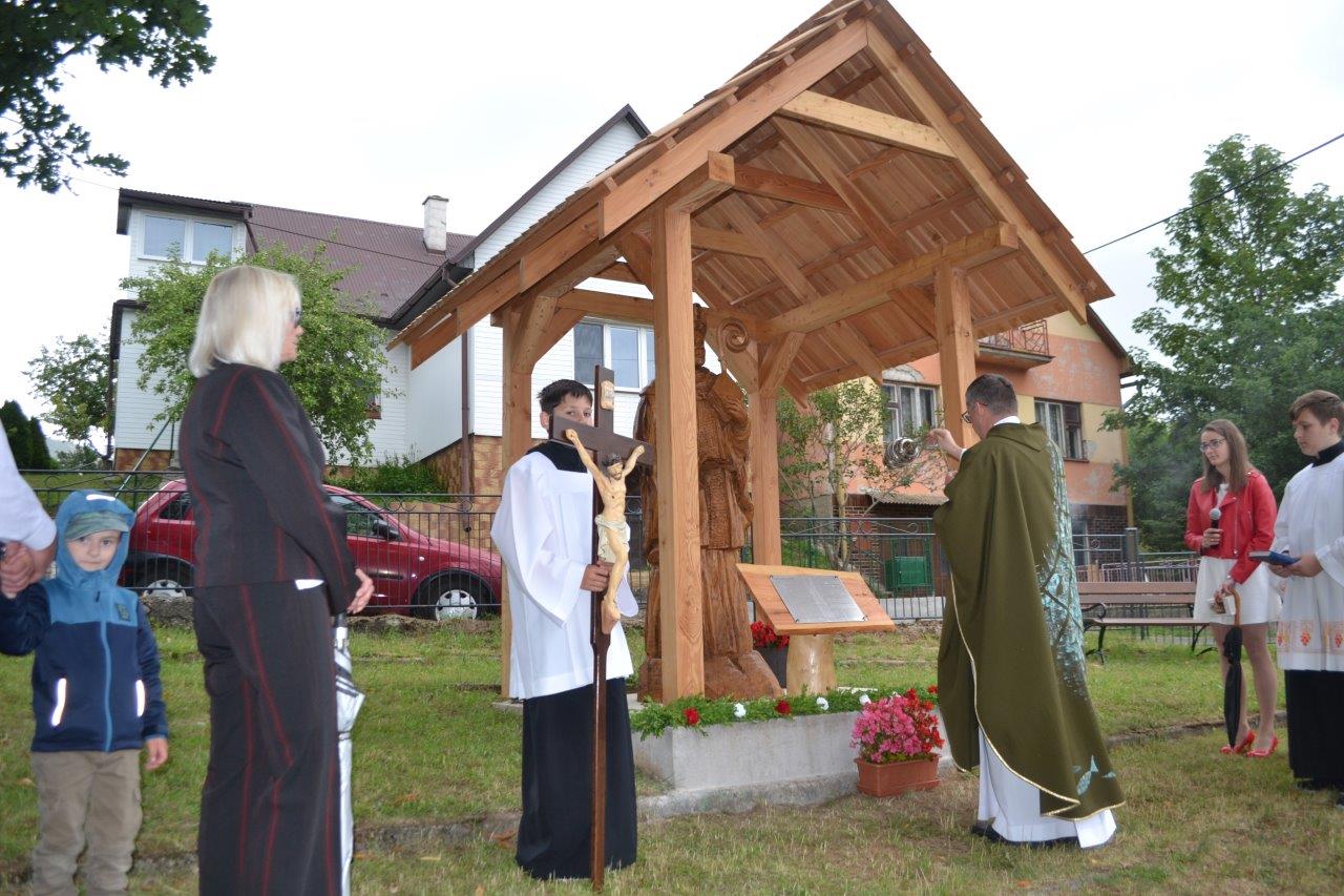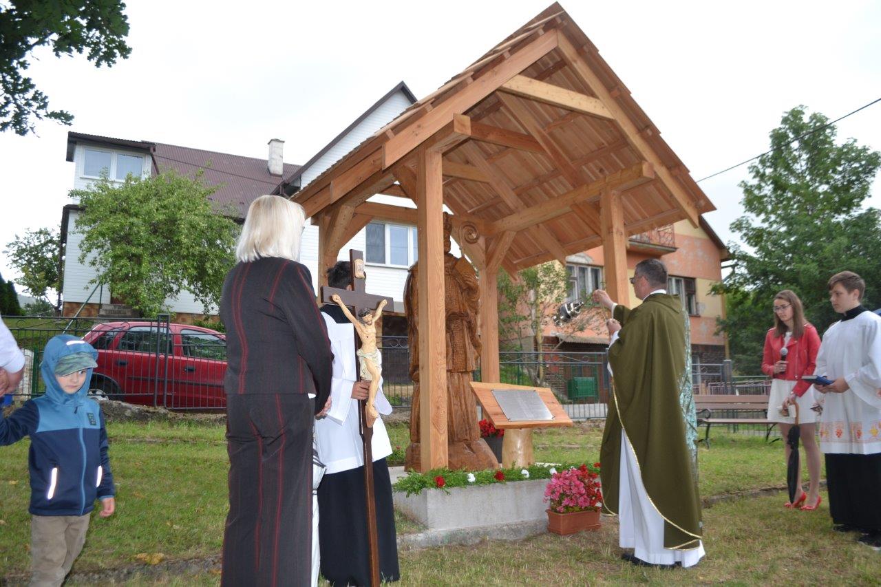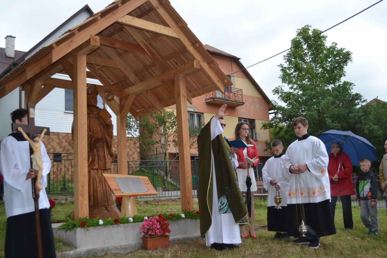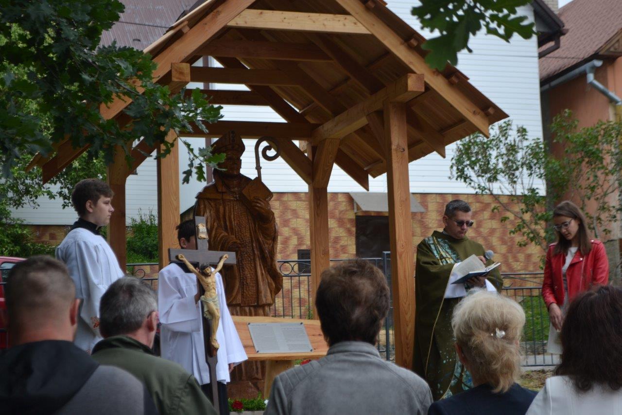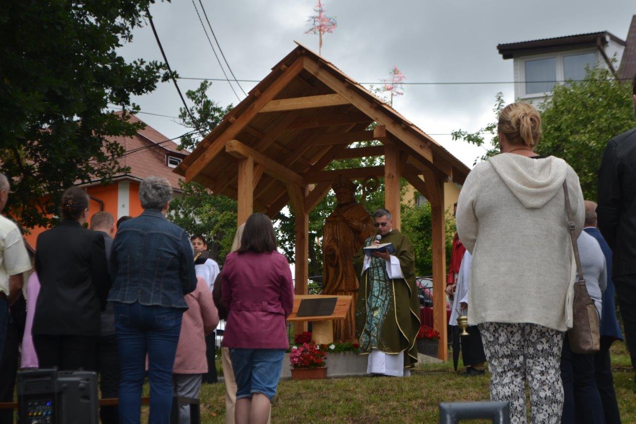 ICLic. Jozef Holubčík, PhD. 10.7.2022 požehnal sochu sv. Vojtecha, ktorú zhotovil Mgr. Dávid Maliňák z dubového dreva.