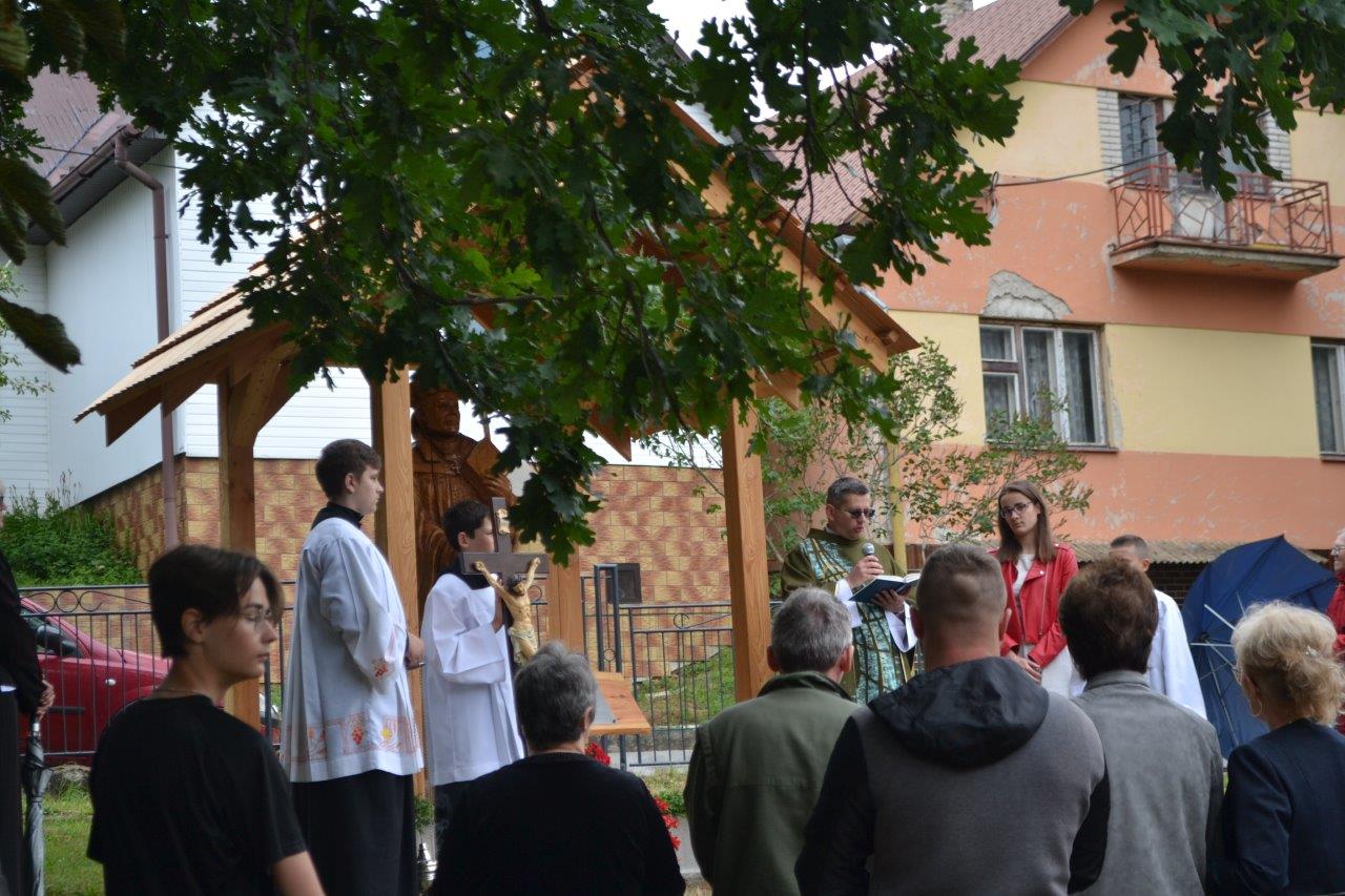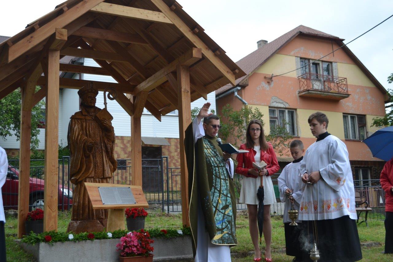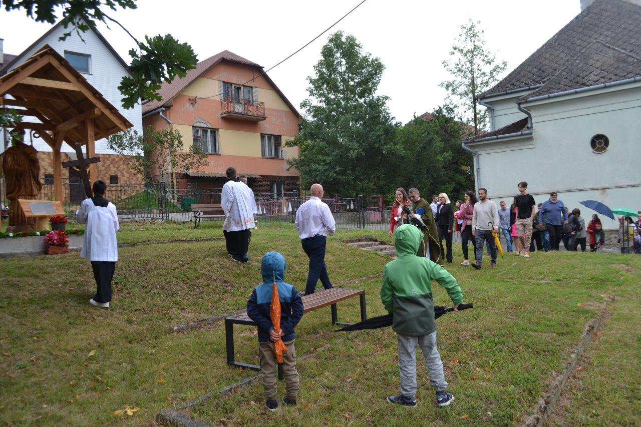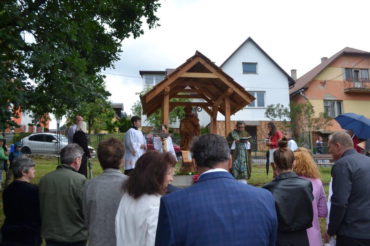ICLic. Jozef Holubčík, PhD. 10.7.2022 požehnal sochu sv. Vojtecha, ktorú zhotovil Mgr. Dávid Maliňák z dubového dreva.